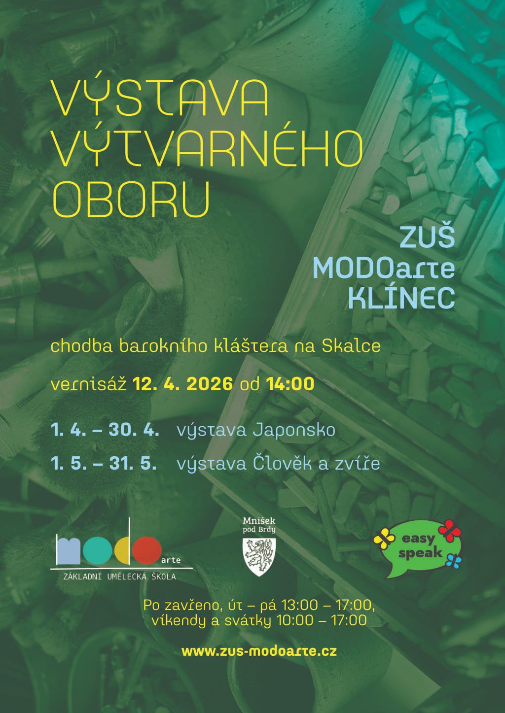 Výtvarný obor připravuje dvě výstavy v chodbě barokního kláštera na Skalce. Vernisáž proběhne v neděli 12. 4. od 14:00
