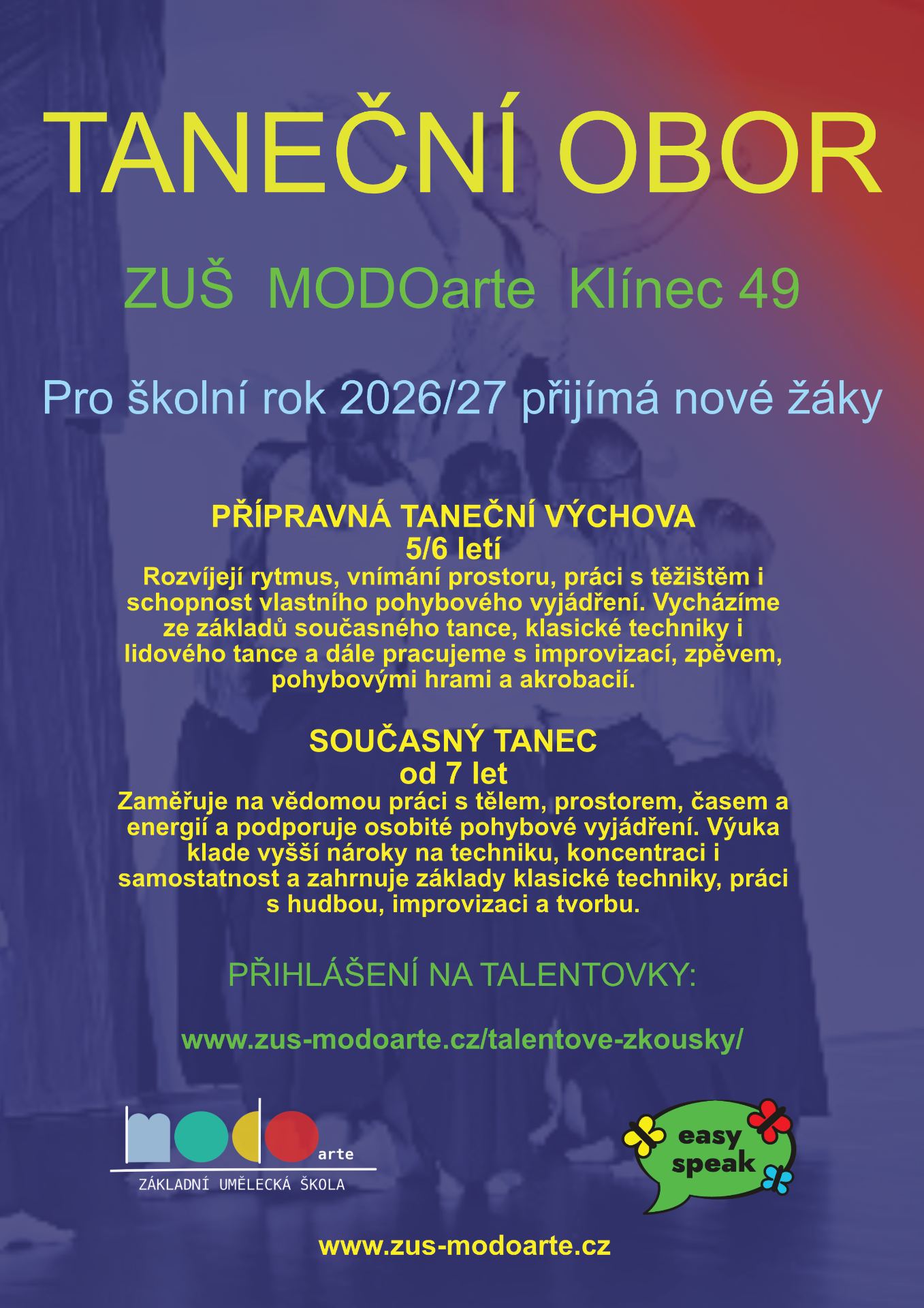 Zájemci o umělecké studium se můžou hlásit od 27.4. na stránkách školy - www.zus-modoarte.cz