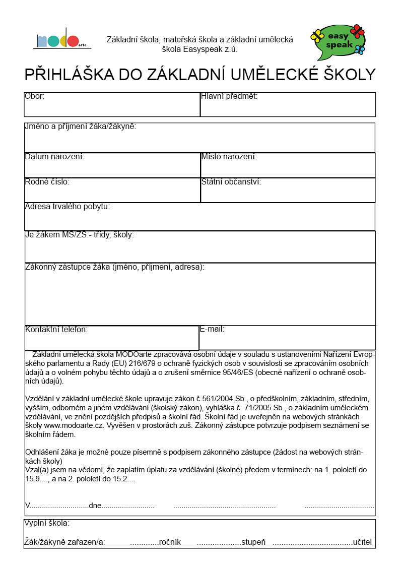 5) PŘIHLÁŠKA KE STUDIU NA ZUŠ